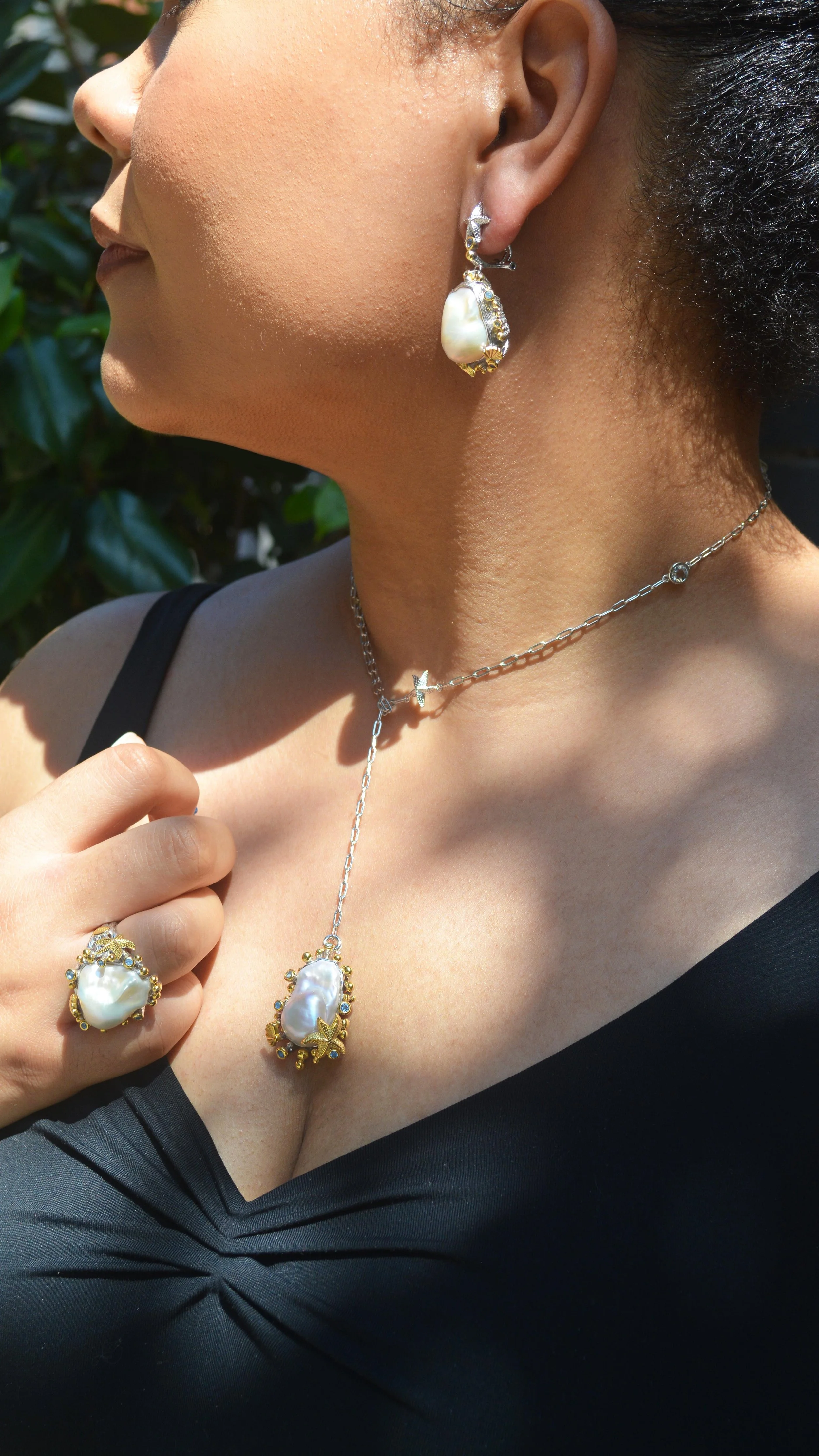 All metal parts of the jewellery collections are made from up-cycled materials such as regenerated brass and gold.